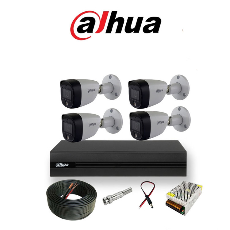 این پکیج شامل 4 عدد دوربین داهوا دید درشب رنگی وارم لایت استارلایت سری ساخت جدید 2022 شرکت داهوا مدل 1209CP