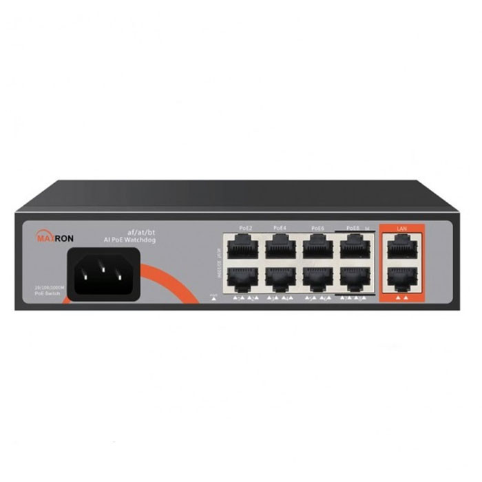 سوییچ شبکه 8 پورت مکسرون مدل +MSW-3008FP-2GL-120I دارای تکنولوژی POE و دارای 2 پورت آپلینک 10/100 و دارای پهنای باند 5.6Gbps است.
