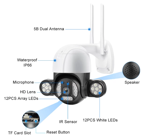 دوربینهای مینی اسپید دام چرخشی بیسیم نثل جدید بی سیم هوشمند با قابلیتهای فراوان از جمله کنترل از روی گوشی موبایل تعغیب سوژه دارا بودن و تشخیص چهره آلارم و دزگیر با کیفیت ۵مگاپیکسل و دید در شب ۷۰ متری رنگی ساپورت رم داخلی تا 128 گیگ قابلیت ضبط تصاویر تا 14روز .قیمت مناسب و به صرفه .نصب و راه اندازی بسیار آسیان و همچنین قیمت دوربین وایفای چرخشی بسیار مرغوم به صرفه میباشد.