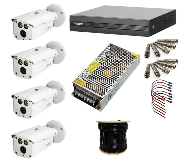 پکیج آماده نصب۴ دوربین داهوا ( دید درشب ۷۰ متری) مناسب باغ و ویلا 1200DP